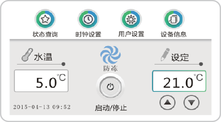 智能防凍功能水溫較低時,機組自動進入防凍模式,